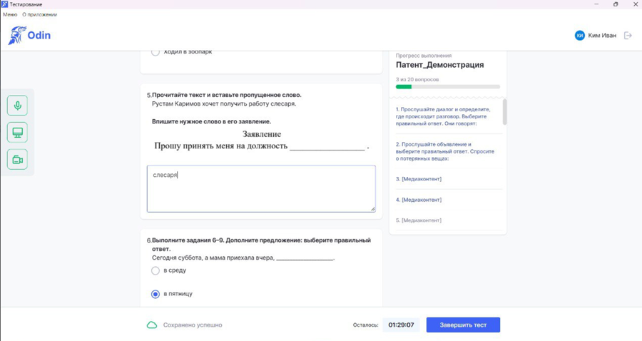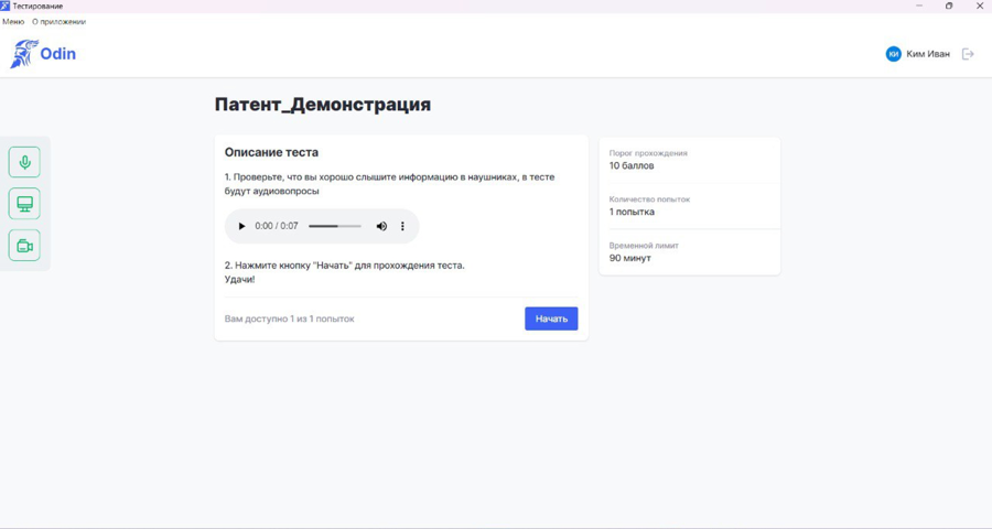 Тестирование будет проходить на платформе Odin. Экзамен будет записываться