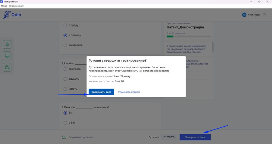 Ответив на все вопросы, завершите тест. | ![]() |
